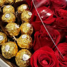 Original caja de metacrilato con forma de corazón, compuesto por rosas rojas de calidad extra (se puede elegir otro color de rosas), acompañadas de bombones Ferrero Rocher. Una romántica y dulce opción para decir "Te Quiero" a la persona deseada.